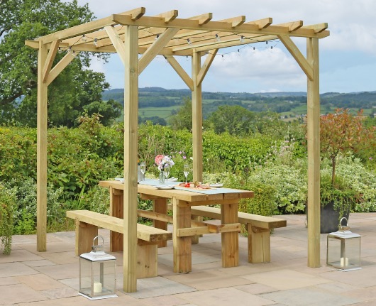 - The Zest Ascot 2.4m Pergola - makes the entertaining space complete and will transform a garden seating area for relaxation and entertaining. The pergola’s sturdy 90mm x 90mm frame comes with chamfered rafters and there is also The Newbury, a 70mm x 70mm alternative.