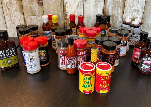 These include: Meat Church, Killer Hogs BBQ, Heath Riles BBQ, Sucklebusters, Whiskey Bent BBQ, Lane’s BBQ, Texas Pepper Jelly, Plowboys BBQ, Blues Hog BBQ, Meat Mitch, Rufus Teague, Kosmo's Q, 2 Gringos Chupacabra, Slap Ya Mama and many more!